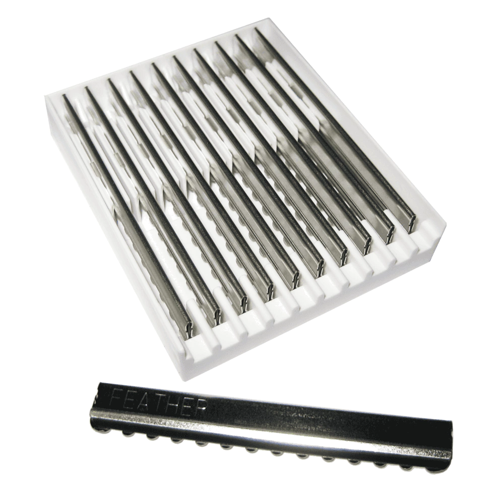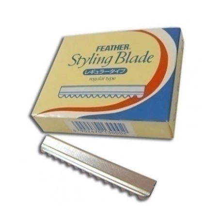 CAJA CON 10 REPUESTOS ORIGINALES DENTADOSPARA NAVAJIN PROFESIONAL MARCA FEATHER MODELO 69