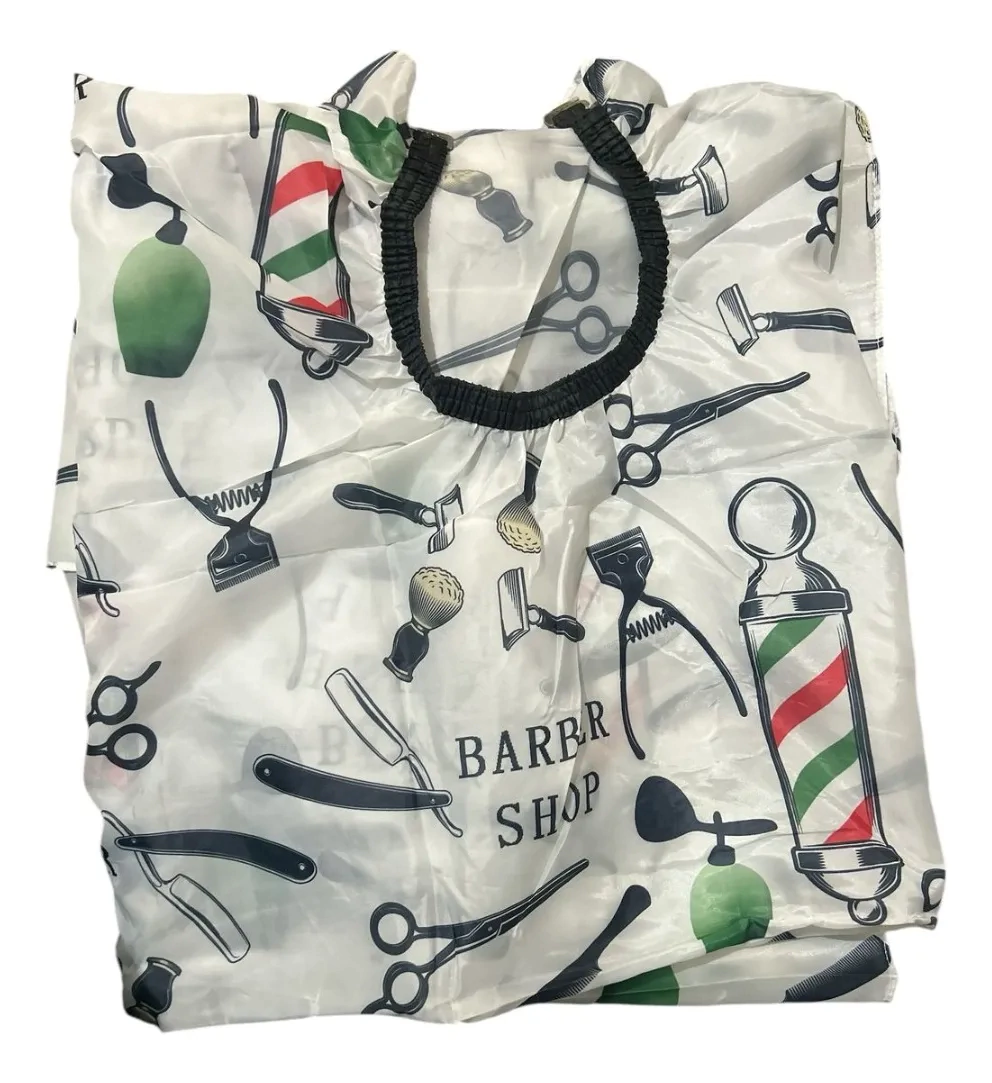 CAPA* PEINADOR MODELO BARBER SHOP FONDO BLANCO MF02 LFWB15Tela de secado rapido para barberiaPensado para uso profesional
